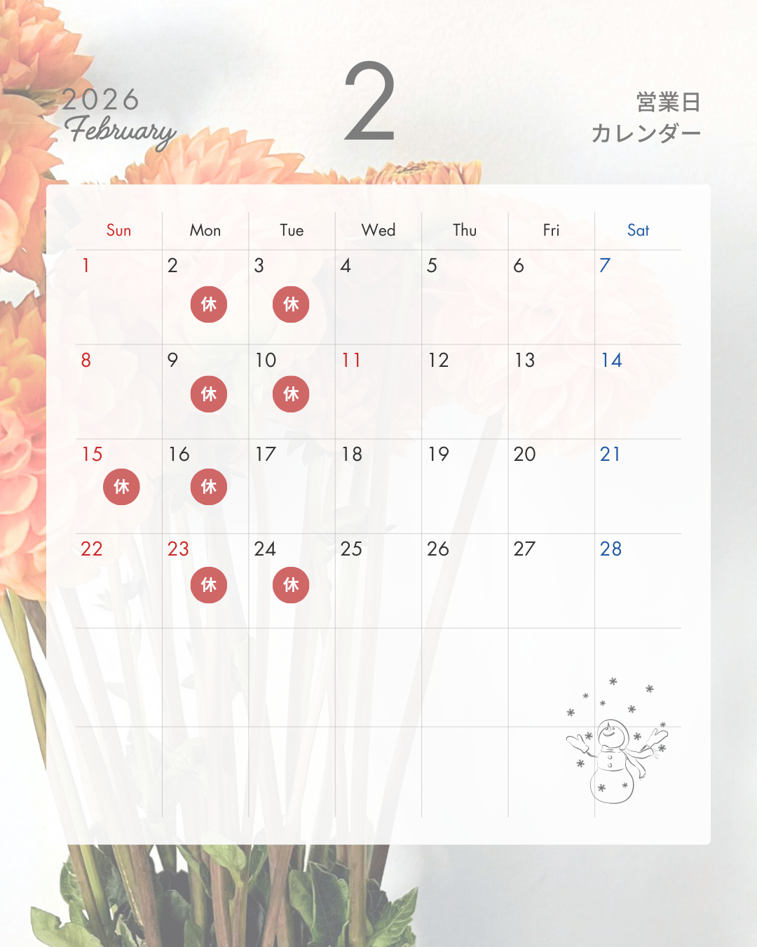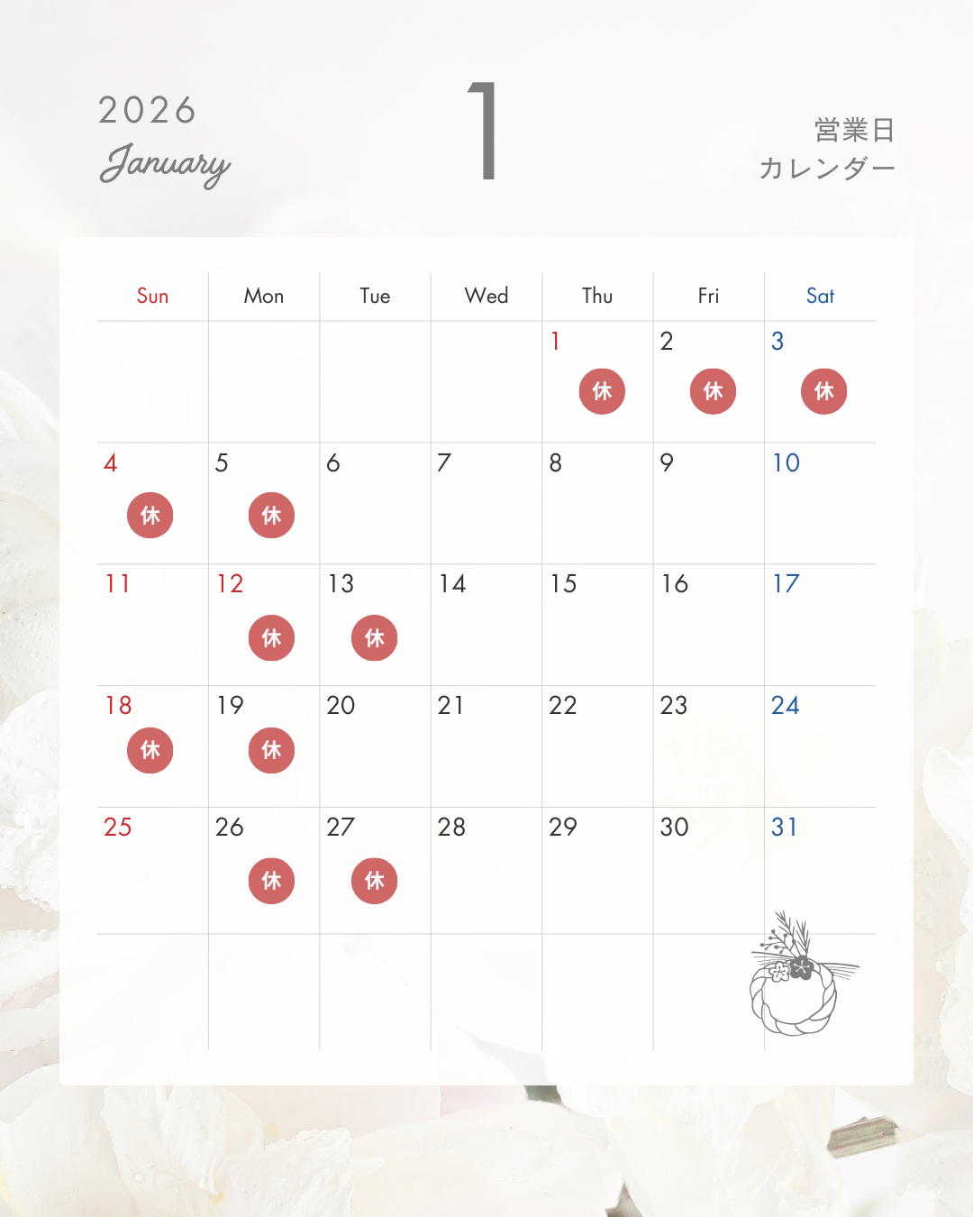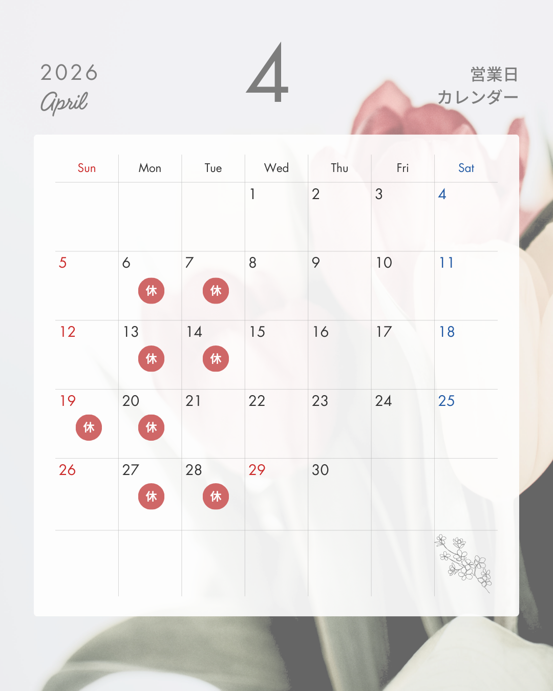 Vol.09 定休日のご案内2026年02月12日 17:532026年4月2026年3月2026年2月2026年1月Vol.08 10,000人の髪が教えてくれた答え。Vol.10 予約・予約変更方法