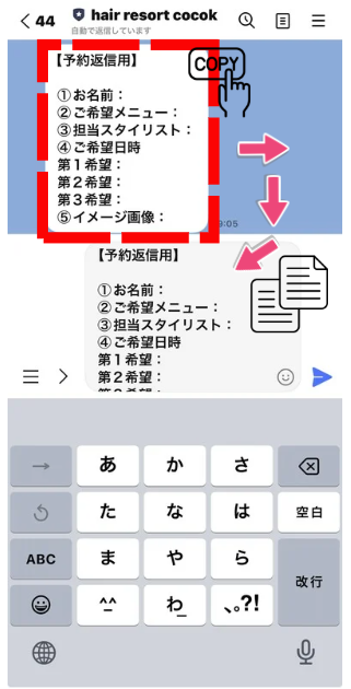 ご予約は、LINE公式アカウントの【予約する】ボタンからお手続きいただけます。