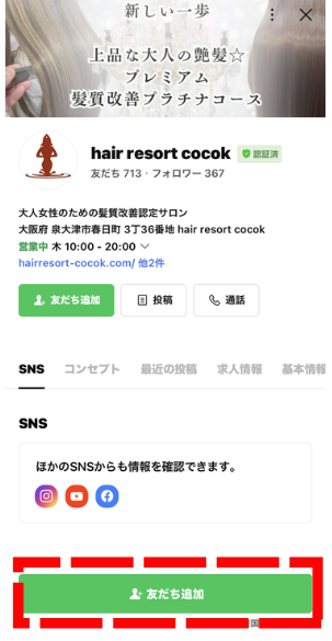 1.LINE友達追加をタップ